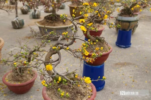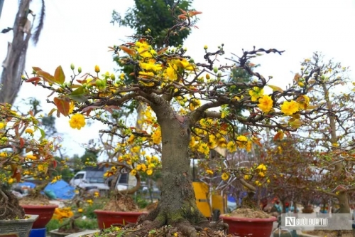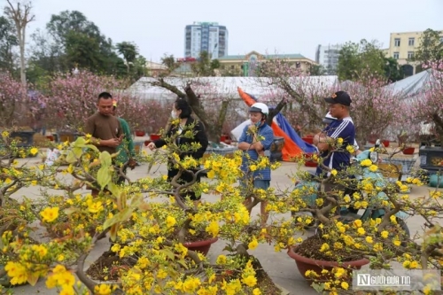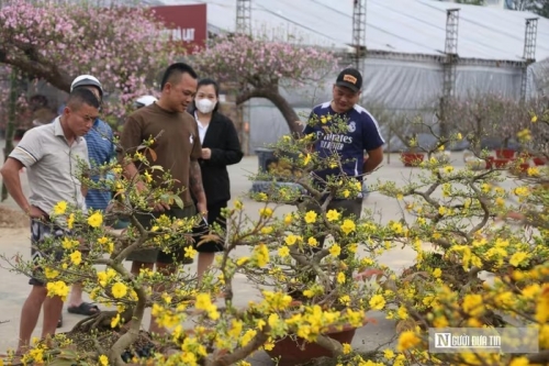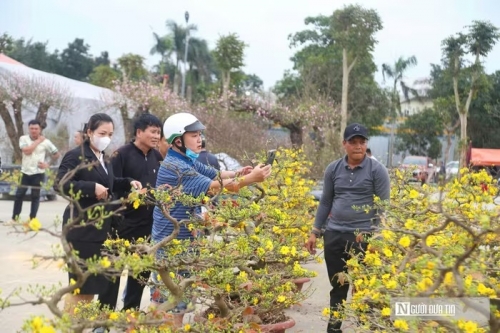 Mặc dù, những chậu mai "xuống phố" muộn hơn các loài hoa khác nhưng cũng thu hút rất đông người dân lựa chọn về chơi Tết. |
