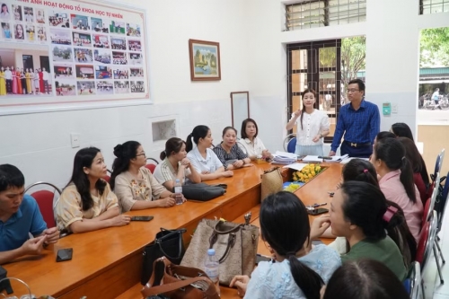 Trường THCS Bến Thủy họp giám thị coi thi thử và động viên thầy cô giáo chấm thi trong dịp nghỉ lễ để sớm có kết quả cho học sinh. Ảnh: Hồ Lài |