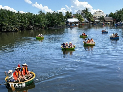 Khách du lịch quốc tế trải nghiệm đi thuyền thúng tại làng du lịch Cẩm Thanh, phường Hội An Đông, thành phố Đà Nẵng. (Ảnh: Trần Lê Lâm/TTXVN) |