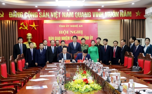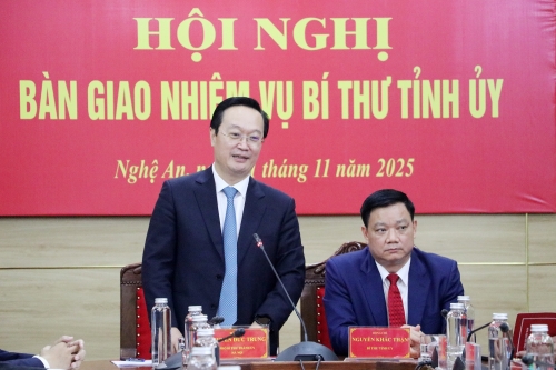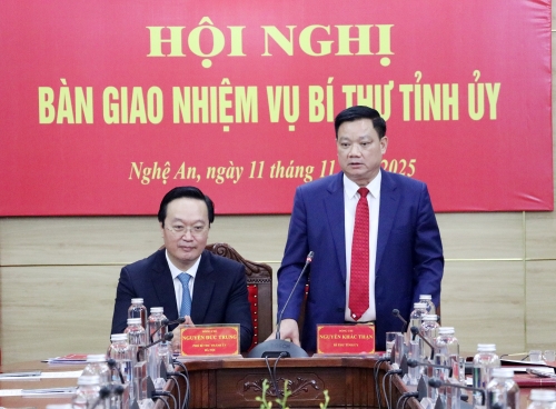 Phát biểu tại hội nghị bàn giao nhiệm vụ, Nguyên Bí thư Tỉnh ủy Nghệ An Nguyễn Đức Trung bày tỏ sự xúc động và cảm ơn sâu sắc đối với Bộ Chính trị, Ban Bí thư đã tin tưởng giao trọng trách mới. Đồng chí Nguyễn Đức Trung gửi lời cảm ơn chân thành đến Đảng bộ, Chính quyền và Nhân dân tỉnh Nghệ An, nơi đồng chí đã có thời gian dài công tác (từng giữ chức Chủ tịch UBND tỉnh, sau đó là Bí thư Tỉnh ủy). Đồng chí nhấn mạnh Nghệ An là mảnh đất giàu truyền thống cách mạng, là quê hương của Chủ tịch Hồ Chí Minh, và thời gian công tác tại đây là một kỷ niệm sâu sắc và quý báu trong cuộc đời công tác của mình.