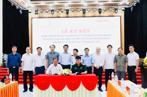 Lễ ký kết Chương trình phối hợp giữa Liên minh HTX tỉnh Nghệ An và Viettel tỉnh Nghệ An – Chi nhánh tập đoàn Công nghiệp Viễn thông quân đội về hỗ trợ chuyển đổi số khu vực kinh tế tập thể, HTX trên địa bàn Nghệ An giai đoạn 2025-2030 |