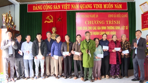 Dịp này, đoàn công tác Hội Nhà báo Việt Nam tỉnh Nghệ An đã trao 25 suất quà cho các gia đình thương binh, liệt sĩ hoàn cảnh khó khăn tại xã Hiếu Giang, với tổng trị giá 25 triệu đồng.