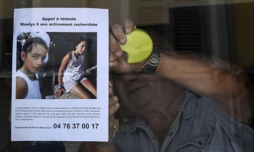 Thông báo tìm kiếm Maëlys De Araujo được dán khắp nơi trong vòng. Ảnh: AFP. |