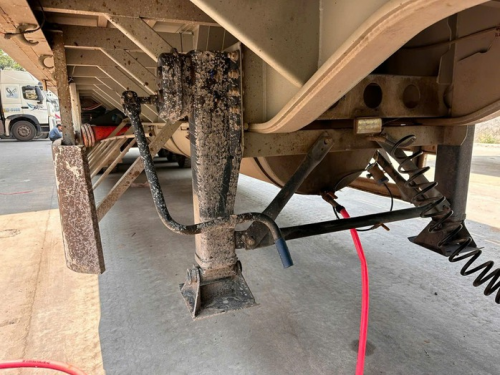 Lực lượng chức năng phát hiện bên dưới xe đầu kéo được gia cố thêm một thùng kim loại, chứa hơn 1.200 lít dầu diesel. Ảnh: Anh Tuấn |