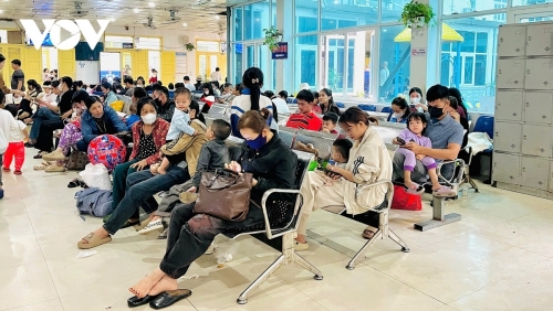 Mỗi ngày có khoảng 600 trẻ tới thăm khám tại bệnh viện Sản Nhi Nghệ An (Ảnh: Hải Chi). |