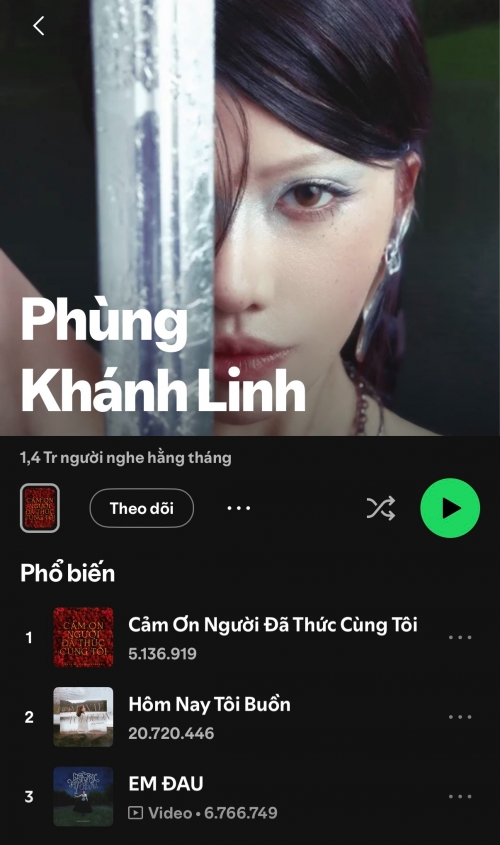 Ở chiều ngược lại, Phao cứu sinh của Hương Tràm không có lợi thế về số liệu. Ca khúc nổi bật nhất của Phao Cứu Sinh là Ước Anh Nhiều Nỗi Buồn thậm chí chưa chạm mốc 1.2 triệu lượt stream trên Spotify. Dù ra mắt album, nhưng Hương Tràm hiện tại chỉ có khoảng 256 nghìn người nghe hàng tháng - một con số hẩm hiu trong thời điểm streaming platform bùng nổ ở Việt Nam. Đặt cạnh Phùng Khánh Linh, sự chênh lệch càng rõ ràng. Nhờ sức lan tỏa của album mới, Phùng Khánh Linh đang duy trì 1.4 triệu người nghe hàng tháng trên Spotify - top cao của nghệ sĩ Việt. Đây là chỉ số đo lường rõ ràng nhất việc 1 nghệ sĩ đang có sản phẩm âm nhạc thu hút người nghe.