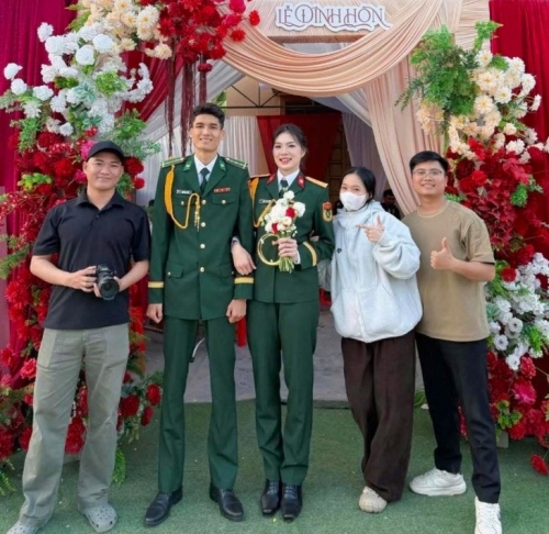 Hình ảnh Duy Tuyến - Mỹ Hằng cùng diện quân phục trong ngày vui khiến người hâm mộ Việt Nam không khỏi thích thú.