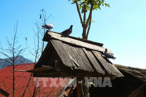 Chuồng chim bồ câu bên hiên nhà được đồng bào Mông bản Huồi Măn làm bằng gỗ sa-mu. Ảnh: Xuân Tiến - TTXVN |
