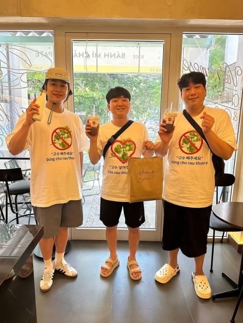 Một nhóm du khách Hàn khác được ghi nhận trước đây, cũng mặc chiếc áo có thông điệp tương tự: Đừng cho rau thơm |