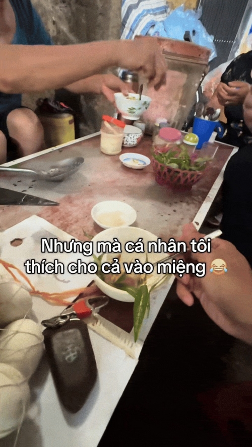 Anh còn không ngại húp cạn nước trong phần trứng của mình (Ảnh Sơn Ưu Tú) |