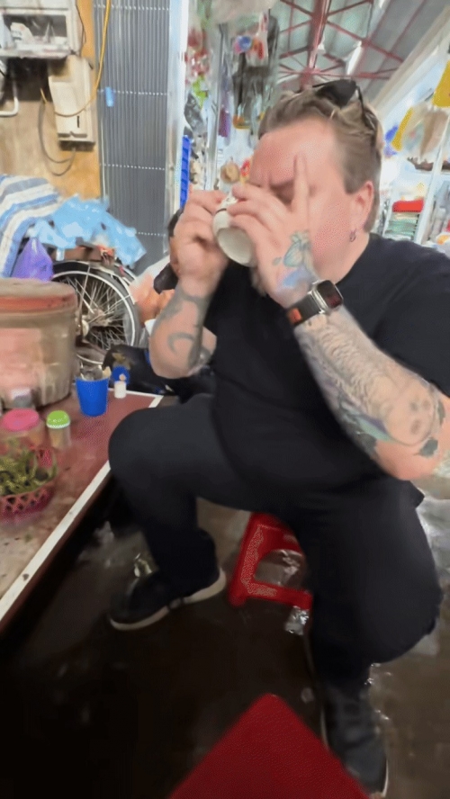 Nhiều vị khách nước ngoài khác cũng đã mạnh dạn thử trứng vịt lộn khi du lịch Việt Nam (Ảnh NV) |