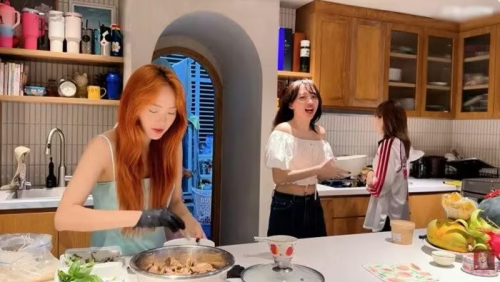 Căn bếp của Phạm Quỳnh Anh sử dụng hệ tủ gỗ kịch trần giúp tối ưu không gian lưu trữ. Ảnh chụp màn hình |