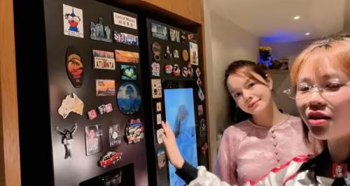 Bề mặt tủ phủ kín những miếng nam dán, ghi dấu ấn nơi Phạm Quỳnh Anh đã đi qua trong suốt 6 năm qua. Ảnh chụp màn hình |