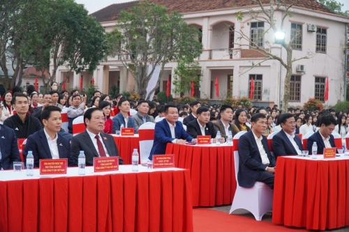 Ông Phan Đình Trạc – Ủy viên Bộ Chính trị, Bí thư Trung ương Đảng, Trưởng Ban Nội chính Trung ương cũng là cựu học sinh Trường THPT Nguyễn Xuân Ôn phát biểu tại buổi lễ. |