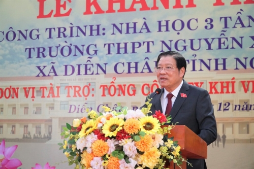 Cùng dự buổi lễ có ông Phan Đình Trạc – Ủy viên Bộ Chính trị, Bí thư Trung ương Đảng, Trưởng Ban Nội chính Trung ương; ông Thái Văn Thành, Phó Chủ tịch UBND tỉnh – Giám đốc Sở GD&ĐT Nghệ An; lãnh đạo Tổng Công ty Khí Việt Nam (PV GAS) – đơn vị tài trợ công trình cùng đông đảo học sinh, cán bộ, giáo viên Trường THPT Nguyễn Xuân Ôn.