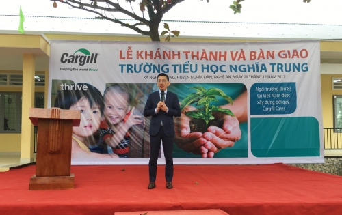 Phát biểu tại buổi lễ, ông Stony Su, cho biết: “Chúng tôi vô cùng vinh dự khi được tài trợ xây dựng một ngôi trường trên quê hương của Chủ tịch Hồ Chí Minh. Đặc biệt, tập đoàn luôn dành sự quan tâm và trân trọng nhất đến mảnh đất, con người nơi đây, hi vọng rằng Cargill sẽ góp một phần công sức vào công cuộc xây dựng xã hội thịnh vượng tại Nghệ An nói riêng và Việt Nam nói chung”.