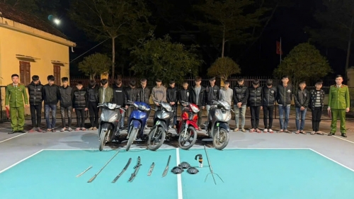 Trước đó, tối 02/01/2026, Công an xã Minh Châu tiếp nhận thông tin phản ánh về việc có 02 nhóm thanh, thiếu niên che kín mặt, điều khiển xe môtô tháo biển số, mang theo hung khí như gậy baton, kiếm, dao, bình xịt hơi cay rượt đuổi, đánh nhau trên tuyến đường thuộc địa bàn xã.