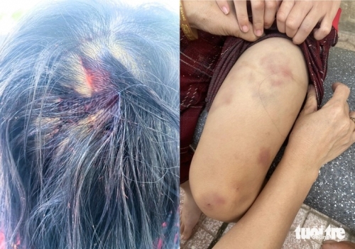 Những vết thương trên đầu và đùi cháu L. do bị cha dượng bạo hành - Ảnh: H.A. |