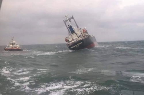 Tàu hàng trọng tải gần 9000 tấn bị nghiêng có nguy cơ chìm. |