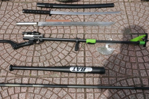 Quá trình điều khiển xe mô tô cả 02 nhóm đều không đội mũ bảo hiểm, nẹt pô, bấm còi inh ỏi, lạng lách đánh võng, mang theo một số hung khí di chuyển với tốc độ cao trên đường, gây mất an ninh trật tự.