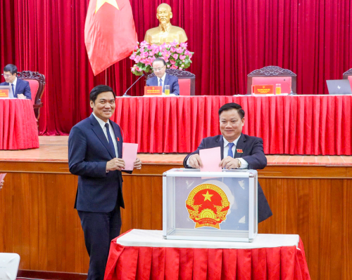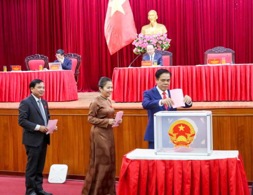 Các đại biểu bỏ phiếu bầu các chức danh chủ chốt của HĐND tỉnh và UBND tỉnh |