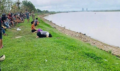 Người thân gào khóc bên sông Lam vụ 3 bố con tử vong sau khi nhảy cầu Bến Thủy 1. |
