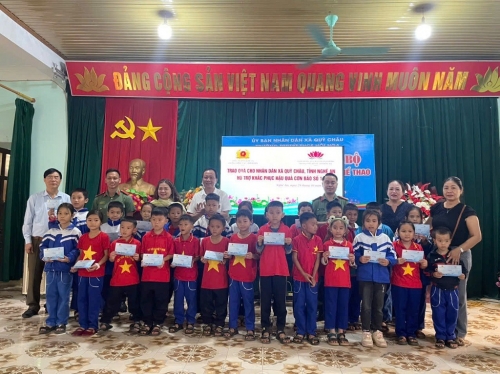 Tại chương trình, đoàn đã trao tặng gần 150 triệu đồng gồm các phần quà thiết thực và tiền mặt cho gần 100 hộ dân bản Lâm Hội, xã Quỳ Châu và giáo viên, học sinh (các trường: Phổ thông dân tộc bán trú THCS Hội Nga; Mầm non Châu Hội; Tiểu học Châu Hội 2; Phổ thông dân tộc bán trú Tiểu học Châu Hội) bị ảnh hưởng nặng nề trong các đợt bão lũ vừa qua ở xã Quỳ Châu.