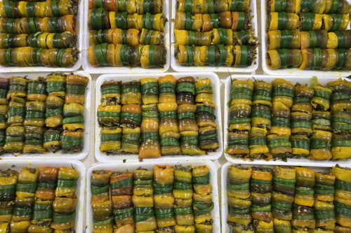 Các cuộn lươn được buộc bằng hành lá, xếp ngay ngắn từ 18-20 viên/khay, sau đó đưa vào tủ cấp đông từ 2-3 tiếng trước khi xuất bán.