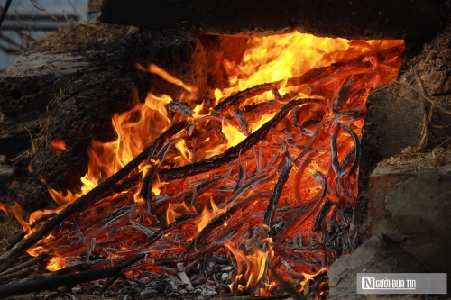 Theo người dân nơi đây, khâu quan trọng nhất quyết định chất lượng sản phẩm chính là nung nồi đất. Người thợ phải “xem lửa” thật chuẩn để gốm chín đều và dừng đúng thời điểm. |