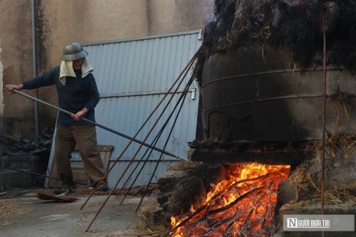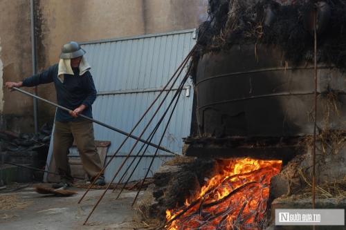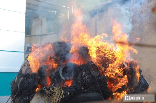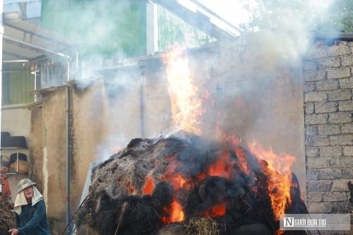 Mỗi mẻ nung xếp khoảng 250–300 chiếc nồi, phủ rơm giữ nhiệt, đun liên tục từ 4–5 tiếng mới hoàn thành. Nếu lửa quá nồi sẽ nứt, sém màu và không tạo được độ bắt mắt khi nhìn vào. |