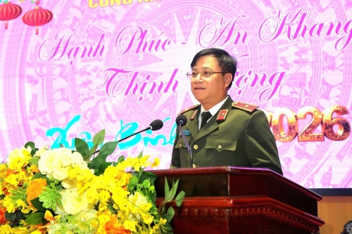 Thay mặt Ban Thường vụ Đảng ủy, Lãnh đạo Công an tỉnh, đồng chí Thiếu tướng Đinh Việt Dũng, Ủy viên Ban Thường vụ Tỉnh ủy, Bí thư Đảng ủy, Giám đốc Công an tỉnh ghi nhận, biểu dương sự nỗ lực, cố gắng của CBCS trong năm 2025 và gửi tới toàn thể lãnh đạo, CBCS cùng gia đình lời thăm hỏi thân tình, lời chúc mừng Năm Mới tốt đẹp nhất.