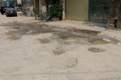 Mặt đường Hải Thượng Lãn Ông ở một số đoạn xuống cấp nghiêm trọng (đoạn qua phường Vinh Phú) |