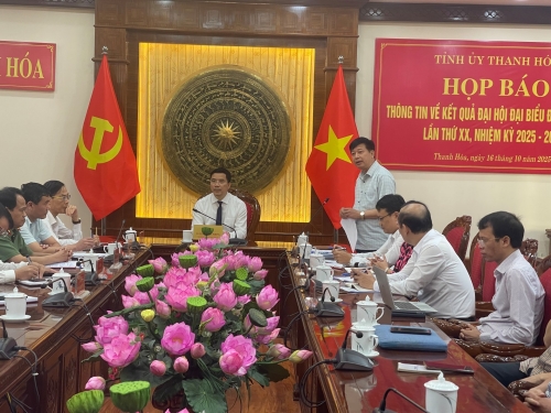 Tỉnh Thanh Hóa họp báo thông tin về kết quả đại hội đảng bộ tỉnh lần thứ XX |