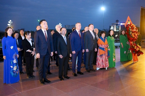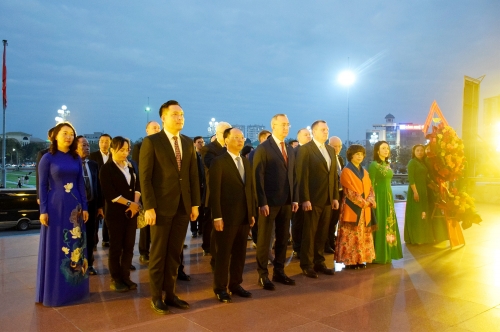 Đoàn công tác làm lễ dâng hoa tại Quảng trường Hồ Chí Minh |