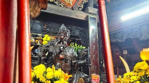 Thái sư Cương Quốc công Nguyễn Xí được thờ tại đền. Ảnh: Nguyễn Diệu |