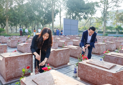 Các đại biểu thắp hương tại các phần mộ của các Anh hùng liệt sỹ |