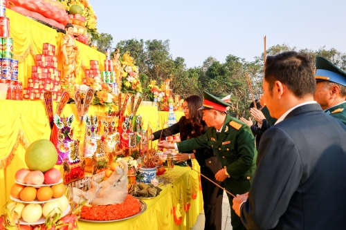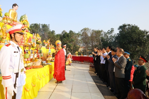 Tại buổi lễ, Đại diện Ban Trị sự Giáo hội Phật giáo tỉnh Nghệ An đã thực hiện nghi thức thỉnh chuông cầu nguyện cho các Anh hùng liệt sỹ |