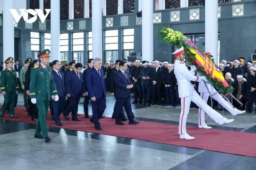 Tổng Bí thư Tô Lâm, Chủ tịch nước Lương Cường, Chủ tịch Quốc hội Trần Thanh Mẫn đã gửi vòng hoa kính viếng nguyên Phó Chủ tịch Hội đồng Bộ trưởng Trần Phương.