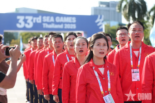 Dưới đây là một số hình ảnh tại Lễ thượng cờ các đoàn thể thao dự SEA Games 33 do cộng tác viên Báo Quân đội nhân dân gửi về từ Thái Lan: