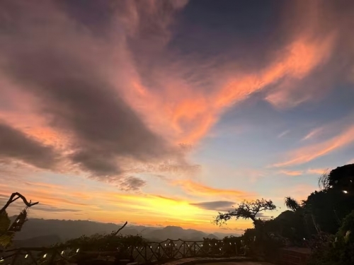 Không chỉ hấp dẫn vào buổi sớm, đỉnh Mu Náu còn là điểm ngắm hoàng hôn được nhiều du khách yêu thích. Từ khoảng 16h30, khi mặt trời dần khuất sau các dãy núi, bầu trời chuyển sang những gam màu cam, hồng, tím rực rỡ, phản chiếu lên mây và rừng núi tạo nên khung cảnh đầy cảm xúc. Ảnh Tiệm cà phê Mu Náu Ơi |