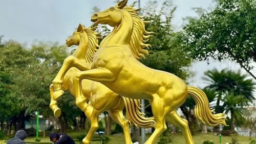 Cặp linh vật ngựa vàng dũng mãnh tung vó tại Lạng Sơn. (Ảnh: Vietnamnet) |