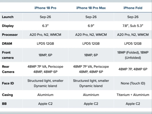 Về phần cứng, cả ba mẫu cao cấp dự kiến sẽ được trang bị RAM LPDDR5 12GB và chip A20 Pro thế hệ tiếp theo của Apple, sản xuất trên tiến trình 2nm. Đặc biệt, các mẫu này cũng sẽ sử dụng modem C2 do Apple tự sản xuất, đánh dấu bước chuyển mình mạnh mẽ trong việc giảm phụ thuộc vào các giải pháp kết nối của bên thứ ba.