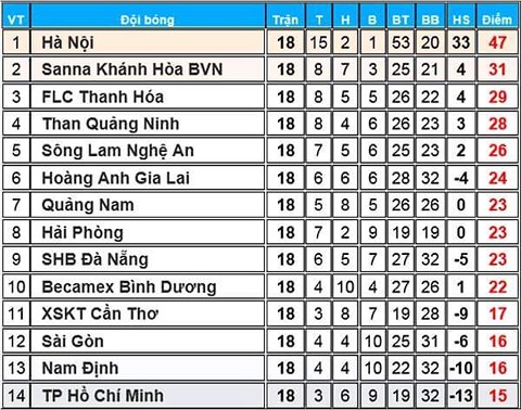 Bảng xếp hạng trước vòng 19: