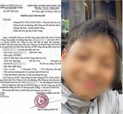 Ngày 16-4, Công an xã Mỏ Vàng đã gửi thông báo truy tìm người đối với cháu A. trên trang mạng xã hội Zalo, Facebook nhưng không có thông tin phản hồi.