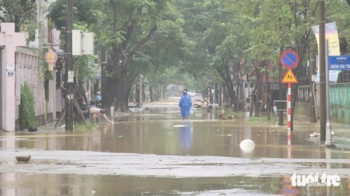 Một số tuyến đường ở TP Huế vẫn còn bị ngập nước - Ảnh: NHẬT LINH |