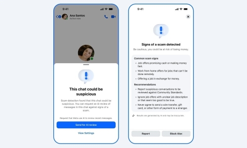 Ứng dụng Messenger cũng được nâng cấp với tính năng phát hiện lừa đảo mở rộng ra nhiều quốc gia hơn. Khi một cuộc trò chuyện với người liên lạc mới có dấu hiệu cảnh báo, như các lời mời làm việc không được yêu cầu, Messenger sẽ gắn cờ và hỏi người dùng có muốn AI xem xét cuộc trò chuyện hay không. Nếu phát hiện lừa đảo, người dùng sẽ nhận được thông tin chi tiết về những điều cần chú ý, cùng tùy chọn để chặn hoặc báo cáo tài khoản đó.