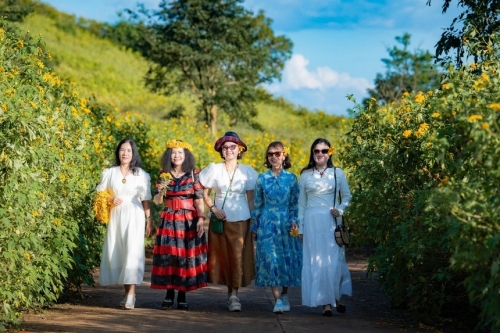 Từ sáng sớm, nhóm du khách đến từ TP.HCM, Hungary và Cần Thơ đã có mặt tại Chư Đăng Ya để ghi lại khoảnh khắc hoa dã quỳ nở rộ. Thời điểm này, nhiệt độ Gia Lai dao động từ 18 đến 27 độ C - lý tưởng cho những chuyến tham quan và săn ảnh mùa hoa. |