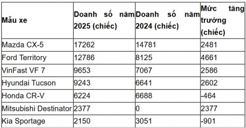 Và cuối cùng, dù mới được bán ra tại thị trường Việt Nam vào tháng 12/2025, nhưng Mitsubishi Destinator đã có màn "chào sân" không thể ấn tượng hơn với 2.377 xe bán ra riêng trong tháng 12/2025, thậm chí còn cao hơn mức doanh số cả năm của Sportage. Đây chắc chắn sẽ là một đối thủ đáng gờm, sẵn sàng thách thức vị trí số 1 của Mazda CX-5 trong năm 2026 này.