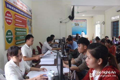 Lao động nộp hồ sơ tìm kiếm cơ hội việc làm tại Trung tâm dịch vụ việc làm Nghệ An. Ảnh: Phước Anh |