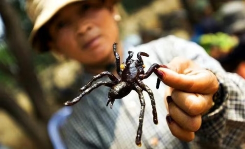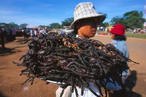 Côn trùng là món ăn không còn xa lạ ở Campuchia nói riêng và các nước châu Á nói chung. Tuy nhiên hiếm có quốc gia nào các món côn trùng lại phổ biến như ở Campuchia. Thoạt nhìn trông có phần đáng sợ nhưng nhện chiên giòn là món khoái khẩu của người dân địa phương và trở thành đặc sản được bày bán rất nhiều tại các khu chợ.